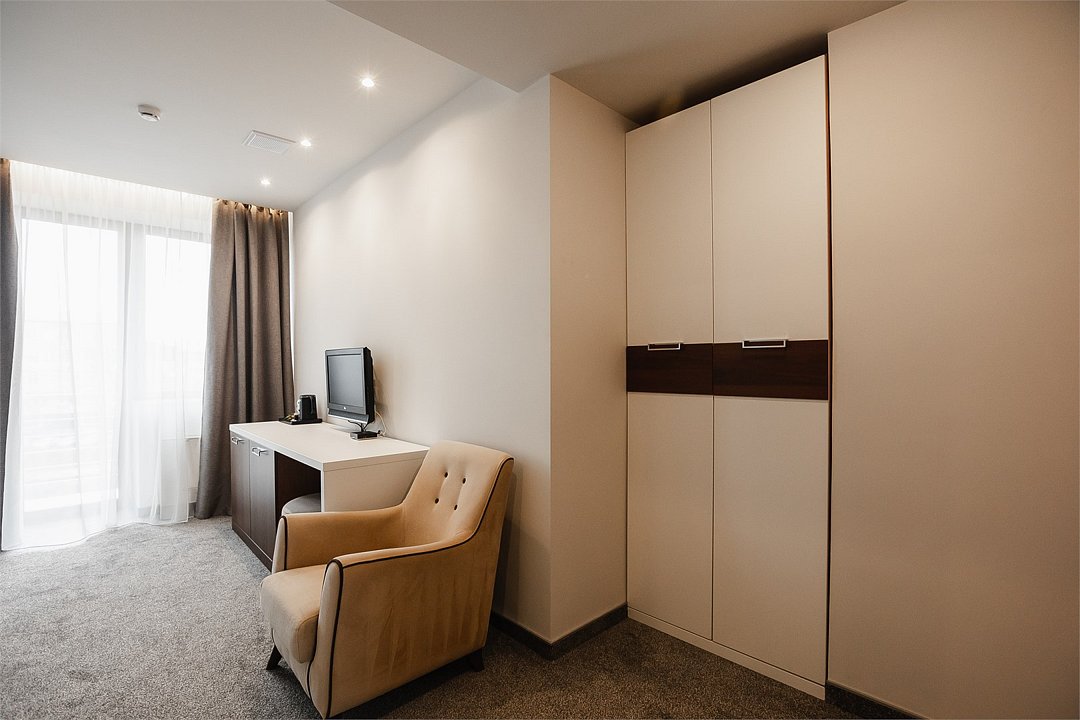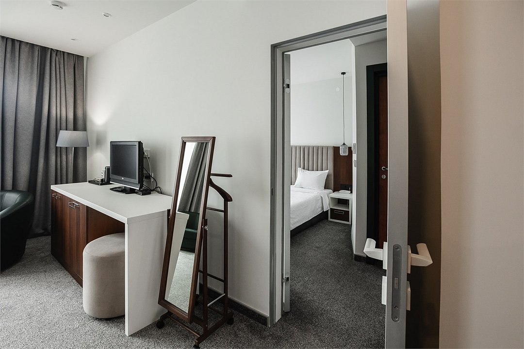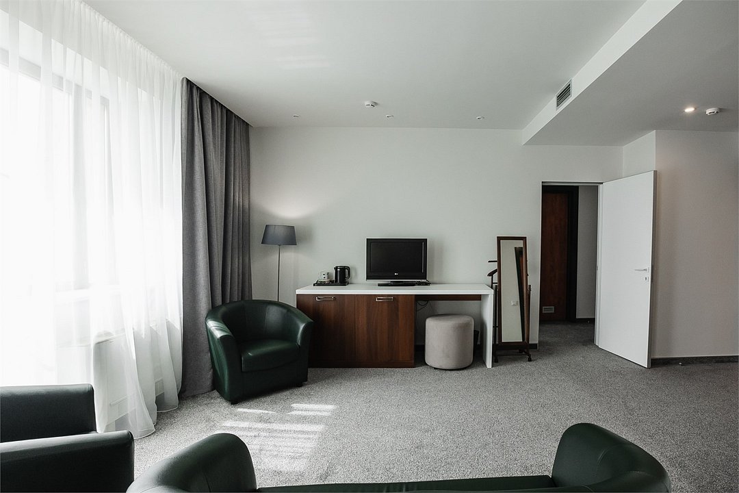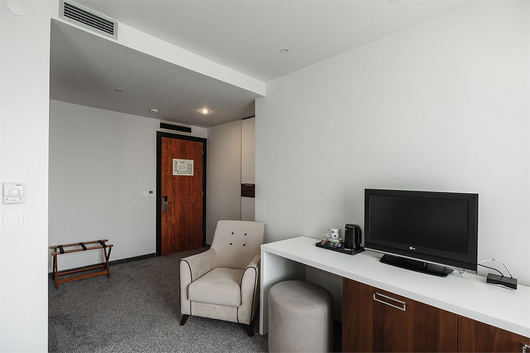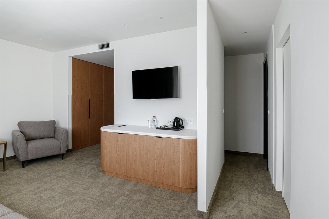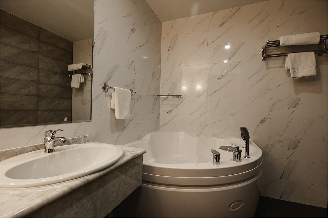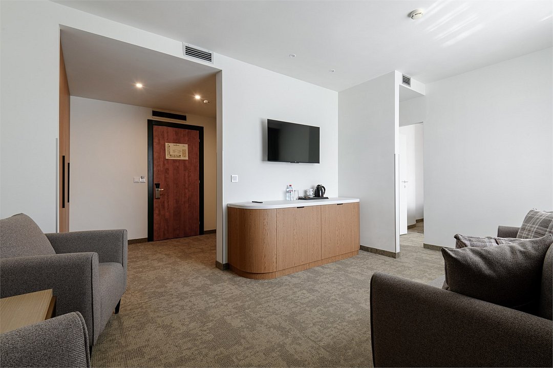 Путешествие с паройПока на 5 звезд не тянетДо 5 звёзд не дотягивает. Приехали в отель, никто не встретил, оформление быстрое. Вещи поднимали сами в номер. Номер достаточно большой, по закрытых окнах тихо. Постель хорошая, вода, чайник, минибар отсутствует, только холодильник. Сейф был закрыт , предыдущими постояльцами, но мы его и не просили открыть. Бери и уноси. Халаты , тапочки, хороший , полный косметический набор. Хорошая уборка, да и весь персонал отзывчивый и дружелюбный.завтрак в целом неплохой , но в пчтизвездочниках всегда есть красная рыба и шампанское на завтрак, хотя бы в выходные. Что не понравилось, ремонт проводился на скорую руку, кое где уже плитках отваливалась , как и ограничители дверей. Про сейф я уже говорил , одна балконная дверь просто была завернула шурупом. , телевизор практически не работал. Что еще, мы останавливались в входные и отель превращался в филиал дворца бракосочетания, который находится недалеко. Свадьбы особо не досажали , тем более в 23.00 все разбегались. А вот проведение флаер шоу, могло принести неприятности как гостям свадьбы, так как не соблюдались расстояния до выступающих, так и самому отелю с гостями, особо серьезных средств пожаротушения я не заметил, тем более взвешенные частицы от некоторых веществ фаре шоу долетали до 6 этажа и как дождик стучали в окно, да и запах исходил от этого шоу не очень приятный.