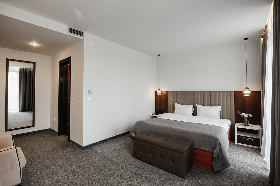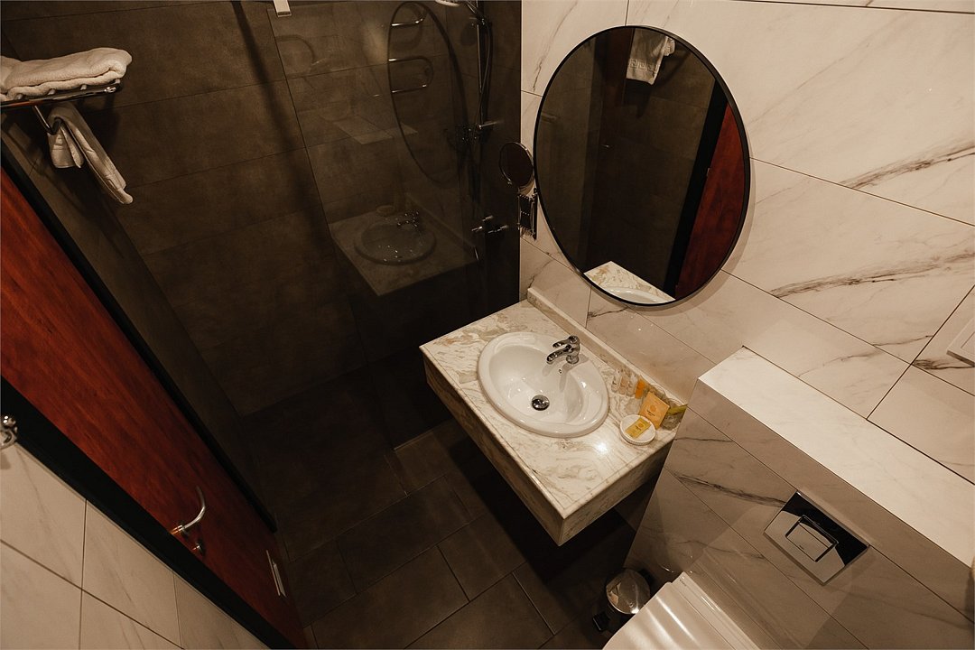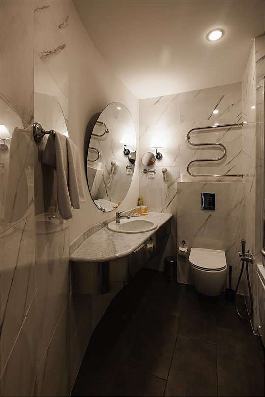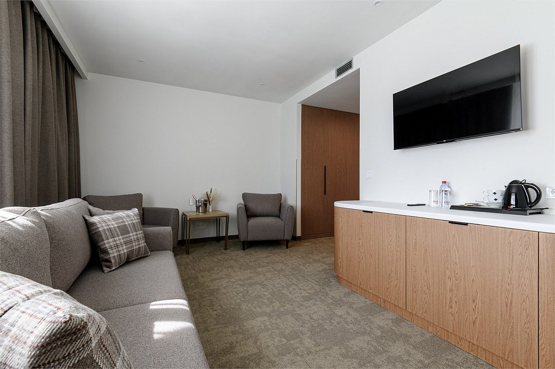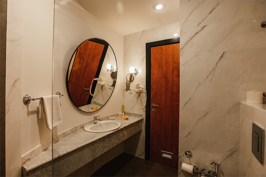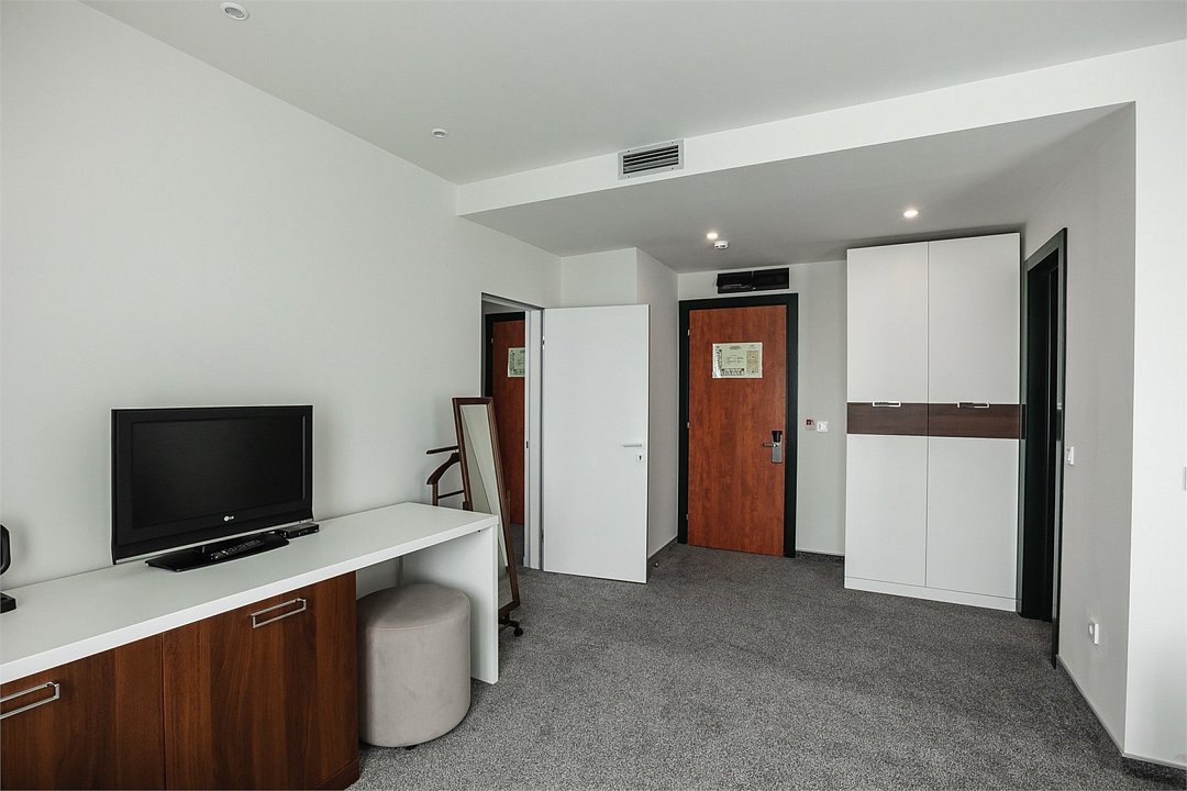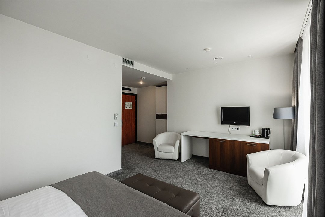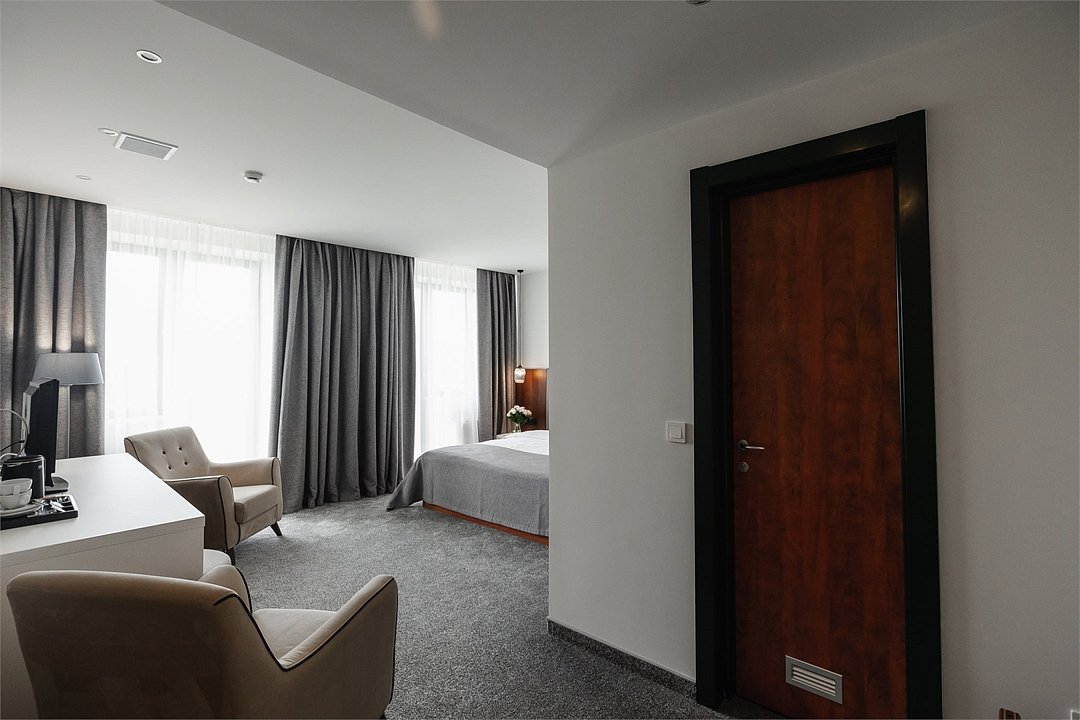 Путешествие с паройПока на 5 звезд не тянетДо 5 звёзд не дотягивает. Приехали в отель, никто не встретил, оформление быстрое. Вещи поднимали сами в номер. Номер достаточно большой, по закрытых окнах тихо. Постель хорошая, вода, чайник, минибар отсутствует, только холодильник. Сейф был закрыт , предыдущими постояльцами, но мы его и не просили открыть. Бери и уноси. Халаты , тапочки, хороший , полный косметический набор. Хорошая уборка, да и весь персонал отзывчивый и дружелюбный.завтрак в целом неплохой , но в пчтизвездочниках всегда есть красная рыба и шампанское на завтрак, хотя бы в выходные. Что не понравилось, ремонт проводился на скорую руку, кое где уже плитках отваливалась , как и ограничители дверей. Про сейф я уже говорил , одна балконная дверь просто была завернула шурупом. , телевизор практически не работал. Что еще, мы останавливались в входные и отель превращался в филиал дворца бракосочетания, который находится недалеко. Свадьбы особо не досажали , тем более в 23.00 все разбегались. А вот проведение флаер шоу, могло принести неприятности как гостям свадьбы, так как не соблюдались расстояния до выступающих, так и самому отелю с гостями, особо серьезных средств пожаротушения я не заметил, тем более взвешенные частицы от некоторых веществ фаре шоу долетали до 6 этажа и как дождик стучали в окно, да и запах исходил от этого шоу не очень приятный.