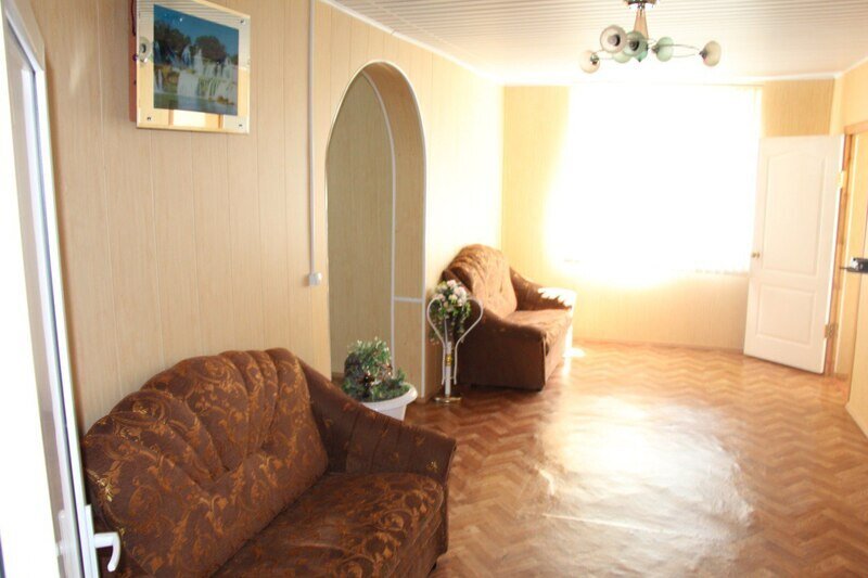 Одна комната с одним двухспальным диваном, другая комната с двумя односпальными кроватями, одна комната с одной односпальной кроватью и гостиная с двумя полутораспальными диванами -трансформерами