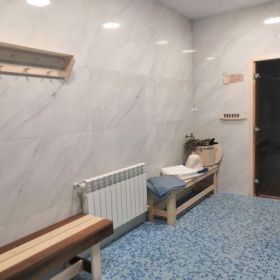 В стоимость входит: халат, банное полотенце, простыня, тапочки. Имеется просторная комната отдыха с большим столом и мягкими диванами, TV.