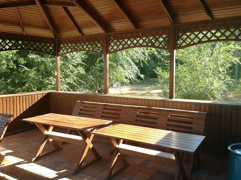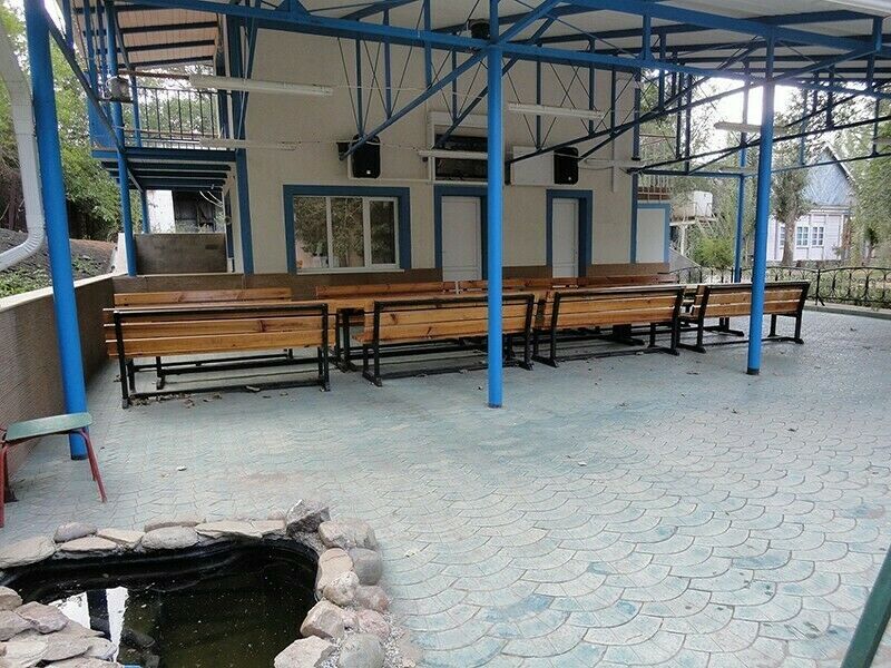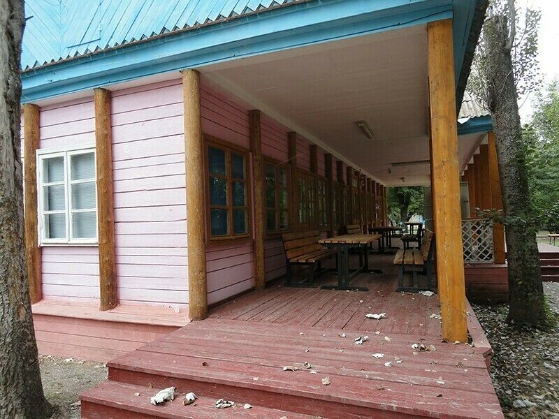На открытой веранде находятся столы, скамейки для размещения до 50 человек.