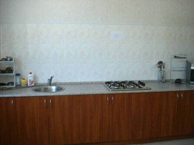 На веранде имеется выход в сан блок (два туалета, душ и 2 раковины) и кухню с газ плитой, холодной и горячей водой.