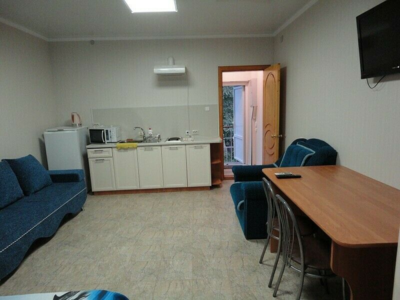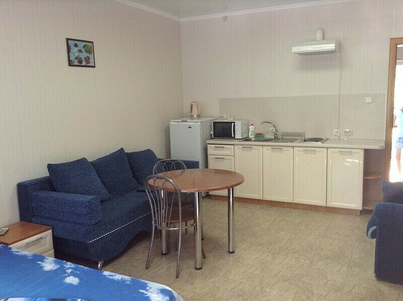 В домиках три или четыре двухместные комнаты, возможна установка дополнительной кровати. Комнаты оборудованы телевизором, холодильником и кондиционером. В домиках имеется душ, туалеты, большая веранда – кухня. К услугам отдыхающих газовая плита, вода, полный комплект посуды, СВЧ, электрический чайник.