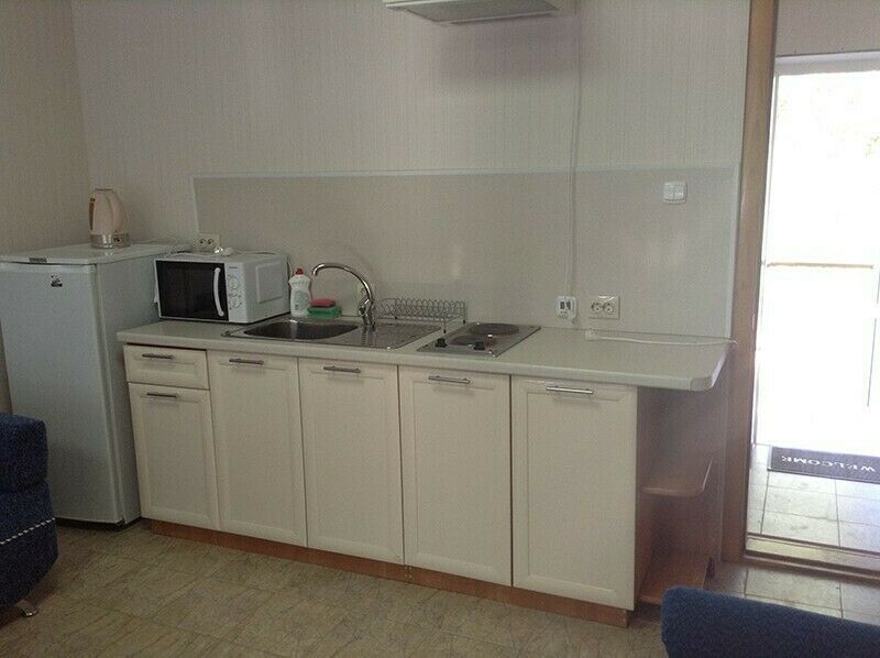 Без удобств. Есть холодильник, плита.