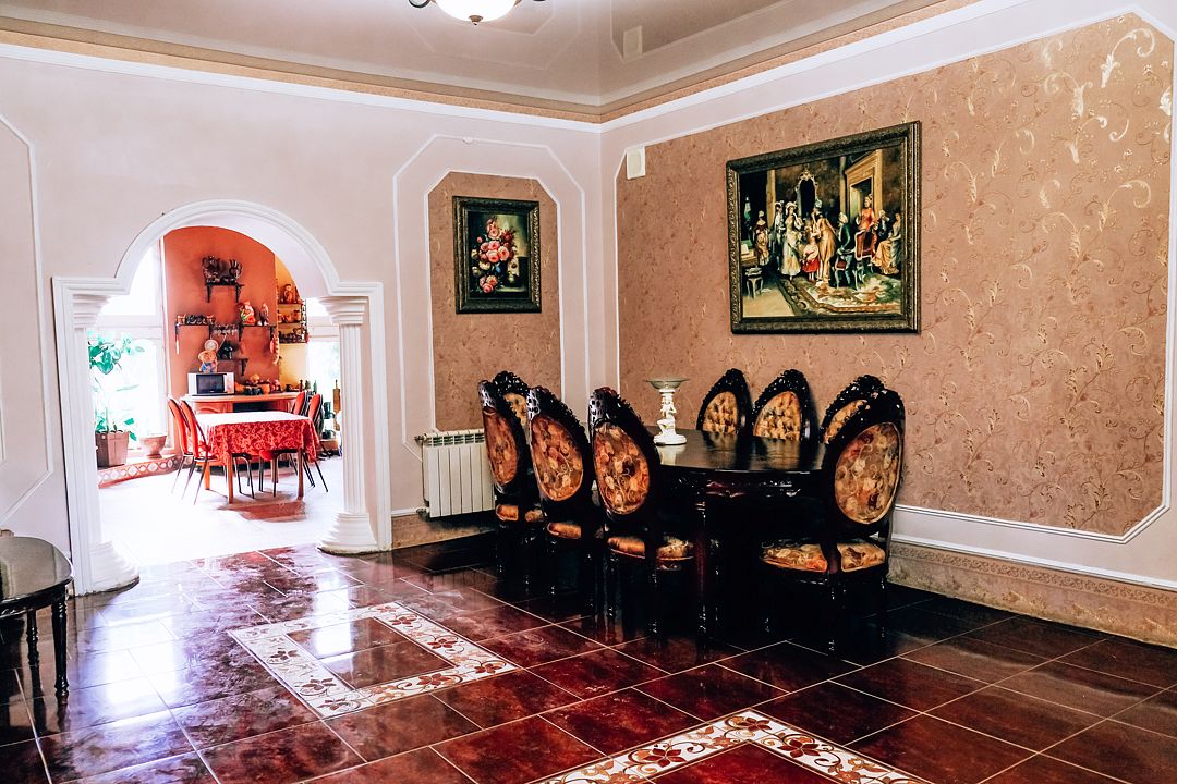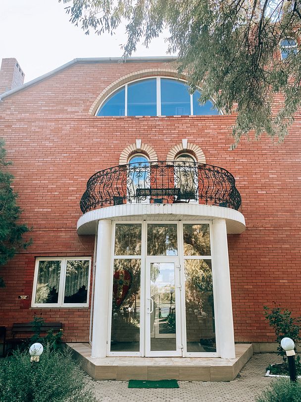 Двухэтажный просторный дом с панорамными окнами на реку и прилегающей беседкой с мангалом. В доме на первом этаже расположена столовая, кухня, огромный зал для проведения мероприятий, общий санузел и одна спальная комната. На втором этаже три спальные комнаты с балконом с шикарным видом на реку. В доме всего четыре спальных комнаты. В каждой комнате двуспальная кровать с ортопедическим матрасом, двуспальный раскладной диван, санузел, сплит-система, телевизор. Кухня оснащена всем необходимым: электрическая плита, чайник, микроволновка, кофеварка, посуда, большой холодильник. Также в зале огромный телевизор и диван, где можно приятно провести время в кругу семьи или в большой компании.