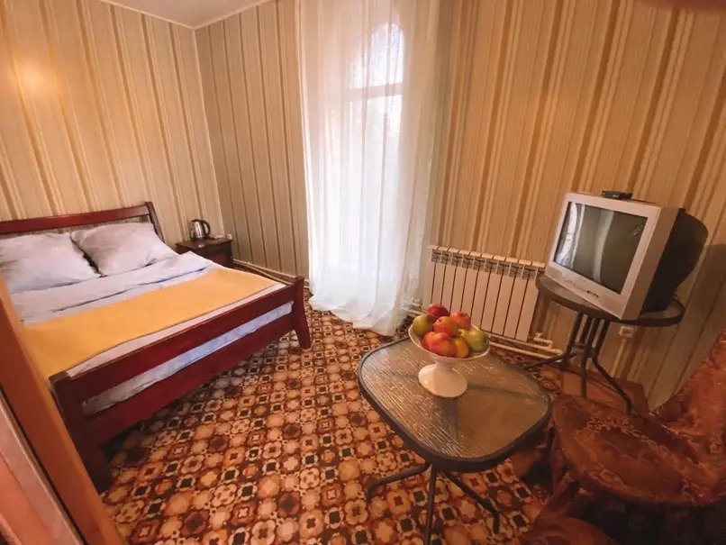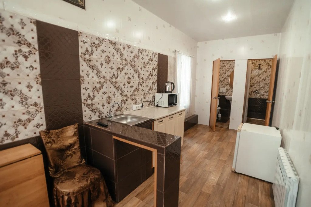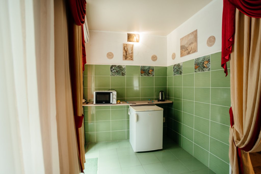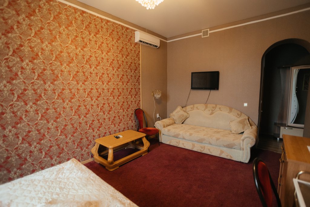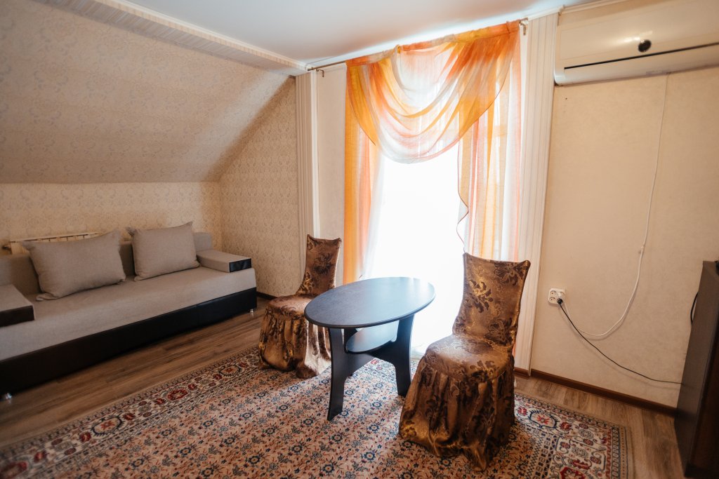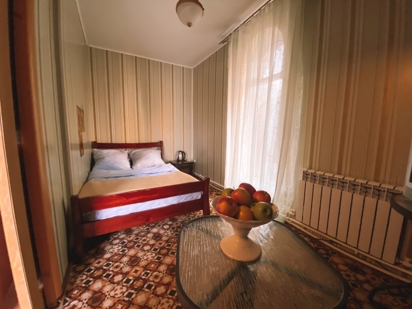Двухместный двухкомнатный номер с двуспальной кроватью и лаундж-зоной . В номере индивидуальный санузел, сплит-система, джакузи. Номер оснащен холодильником, телевизором, чайником. Имеется свой дворик. Идеально подходит для пары.