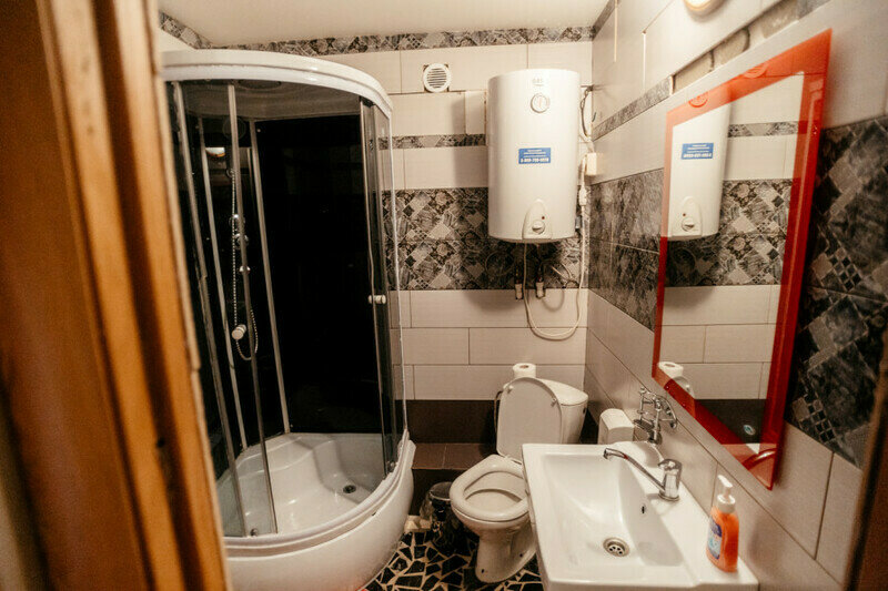 В номере три полутороспальные кровати, один раскладной полутороспальный диван. Санузел в номере, чайник, микроволновая печь, мини-холодильник