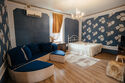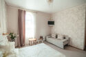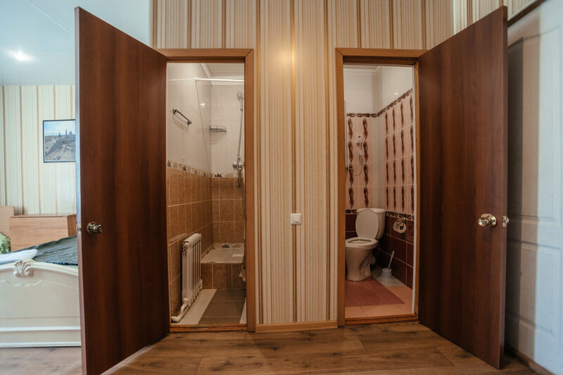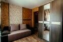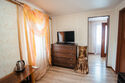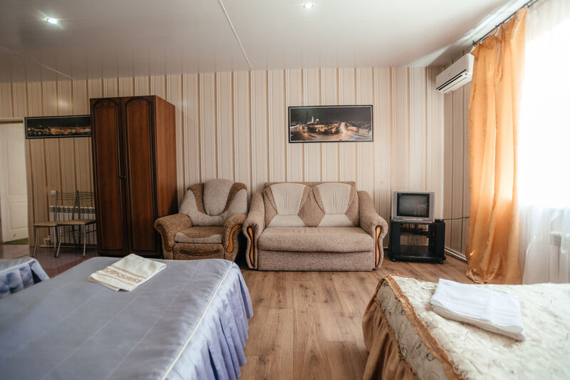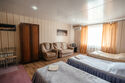 Двухместный просторный номер с одной двуспальной кроватью и раскладным двуспальным диваном. В номере индивидуальный санузел, сплит-система. Номер оснащен холодильником, телевизором, чайником, микроволновой печью.