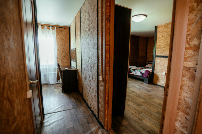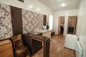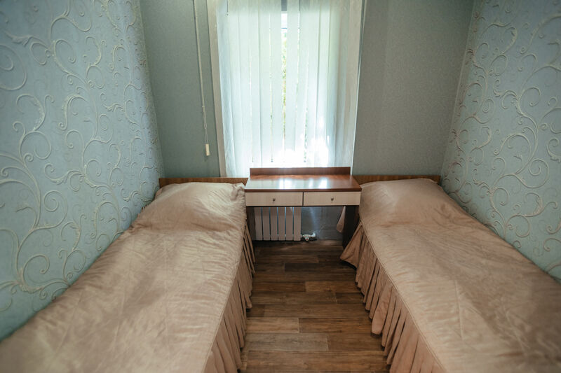 Четырехместный двухкомнатный просторный номер на втором этаже. В номере мини-кухня с холодильником, раковиной и чайником. В одной комнате - три односпальные кровати, во второй комнате - две полутороспальные кровати и полутороспальный диван. Каждая из комнат оснащена сплит-системой. В номере индивидуальный санузел, телевизор.