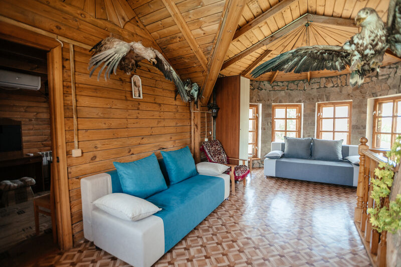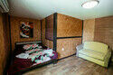 Двухместный просторный номер в доме из натурального дерева с одной двуспальной кроватью и раскладным двуспальным диваном. В номере индивидуальный санузел, сплит-система. Номер оснащен холодильником, телевизором, чайником. Идеально подходит для семьи.