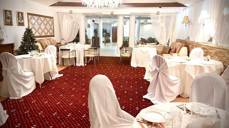 Полностью оборудованный для проведения корпоративных мероприятий, юбилеев, свадеб и других торжественных событий банкетный зал на базе «Замок».
