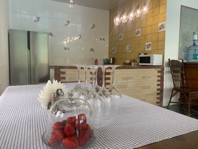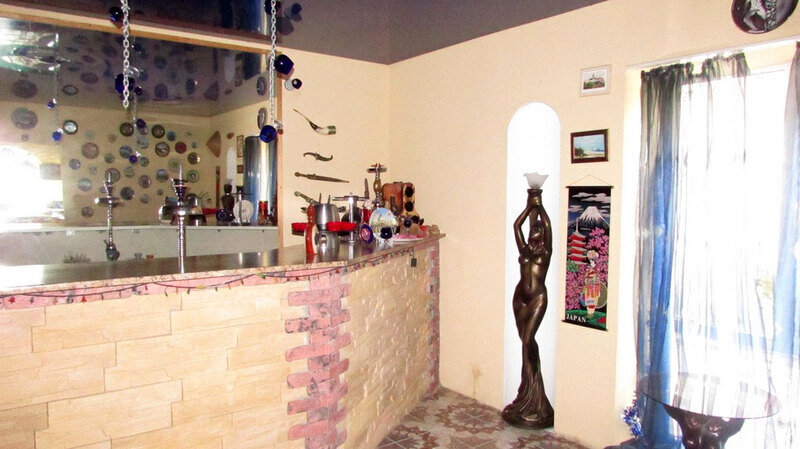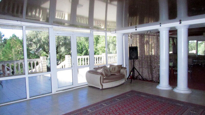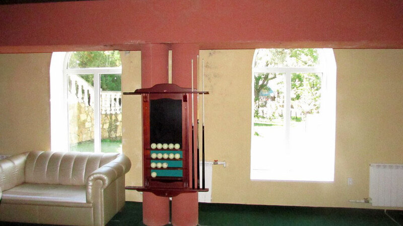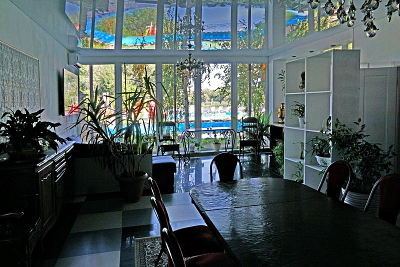 Двухэтажный просторный дом с панорамными окнами на реку и прилегающей беседкой с мангалом. В доме на первом этаже расположена столовая, кухня, огромный зал для проведения мероприятий, общий санузел и одна спальная комната. На втором этаже три спальные комнаты с балконом с шикарным видом на реку. В доме всего четыре спальных комнаты. В каждой комнате двуспальная кровать с ортопедическим матрасом, двуспальный раскладной диван, санузел, сплит-система, телевизор. Кухня оснащена всем необходимым: электрическая плита, чайник, микроволновка, кофеварка, посуда, большой холодильник. Также в зале огромный телевизор и диван, где можно приятно провести время в кругу семьи или в большой компании.