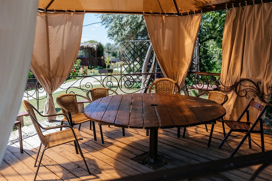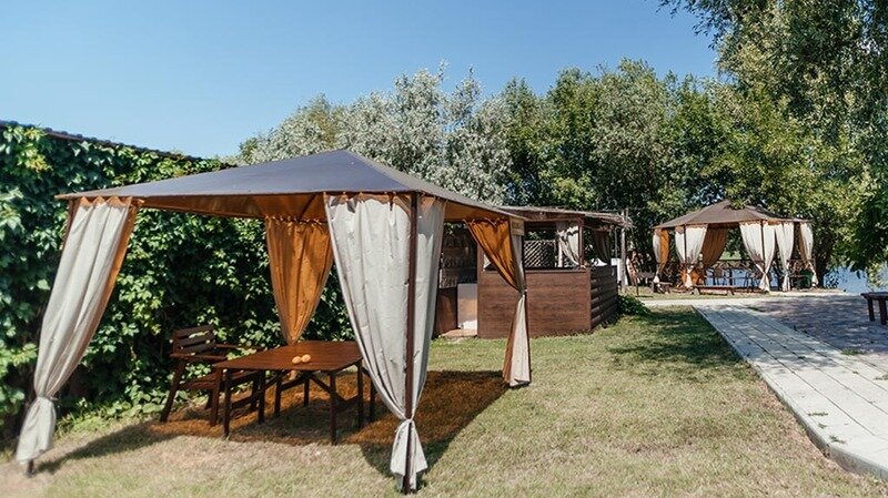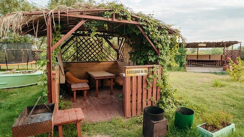 В любое время гости базы «Замок» могут устроить дружеские посиделки или просто отдохнуть в беседках на территории базы.