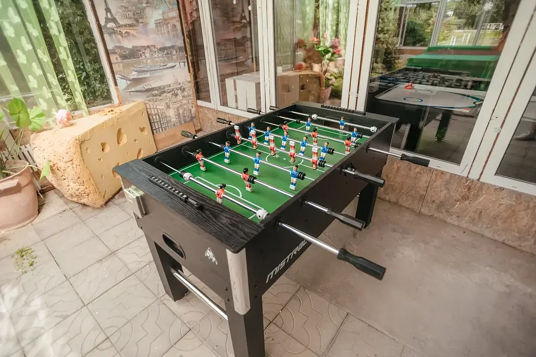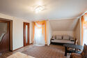 Второй этаж двухэтажного просторного дома. На этаже два двухкомнатных номера и общая лаундж-зона. В каждом двухкомнатном номере: в одной комнате двуспальная кровать и двуспальный диван, во второй комнате односпальная кровать. В каждой комнате индивидуальная сплит-система. На каждый номер индивидуальный санузел. В общем на этаже две двуспальные кровати, две односпальные кровати и два двуспальных дивана. В холле - диван, обеденная зона, микроволновая печь, холодильник, телевизор, чайник. Идеально подходит для большой семьи.