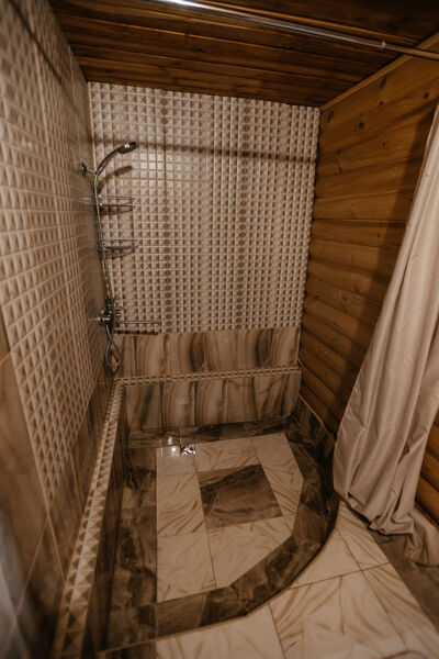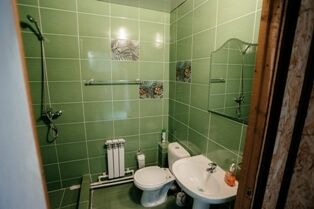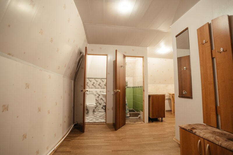Двухэтажный просторный дом с баней на дровах. В доме на первом этаже расположена столовая, баня и санузел. На втором этаже две спальные комнаты с общим холлом и балконом. В доме всего четыре односпальные кровати и два двуспальных раскладных дивана. В каждой комнате сплит-система. Дом оснащен холодильником, телевизором, чайником. В стоимость суток входит 2 часа бани. Идеально подходит для большой семьи.