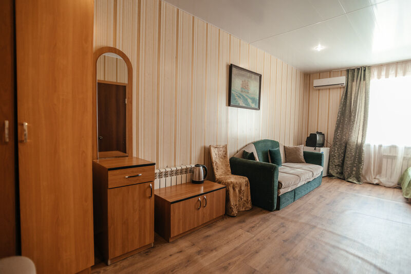 Двухместный просторный номер с одной двуспальной кроватью. Также есть раскладной диван. В номере индивидуальный санузел, сплит-система. Номер оснащен холодильником, телевизором, чайником. Идеально подходит для семьи.