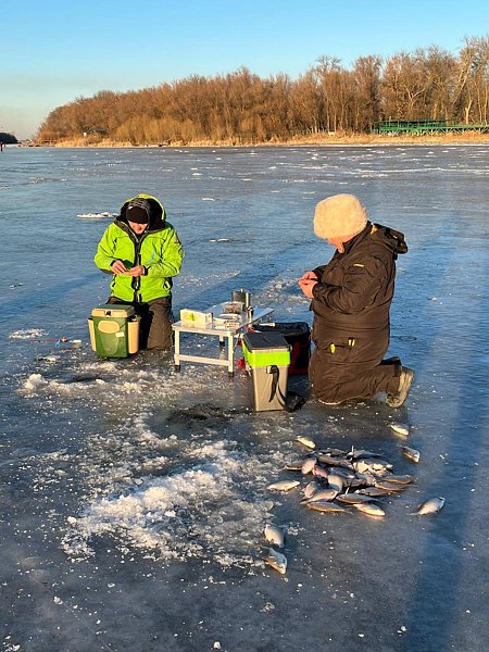 Даже если будет теплая зима и не станет лед на больших реках, можно рыбачить на замерзших берегах. Замерзают и маленькие речушки — ерики в нескольких километрах от базы. Поэтому гостей доставляют к месту подледной рыбалки на автобусе, внедорожниках, аэросанях или БМД.