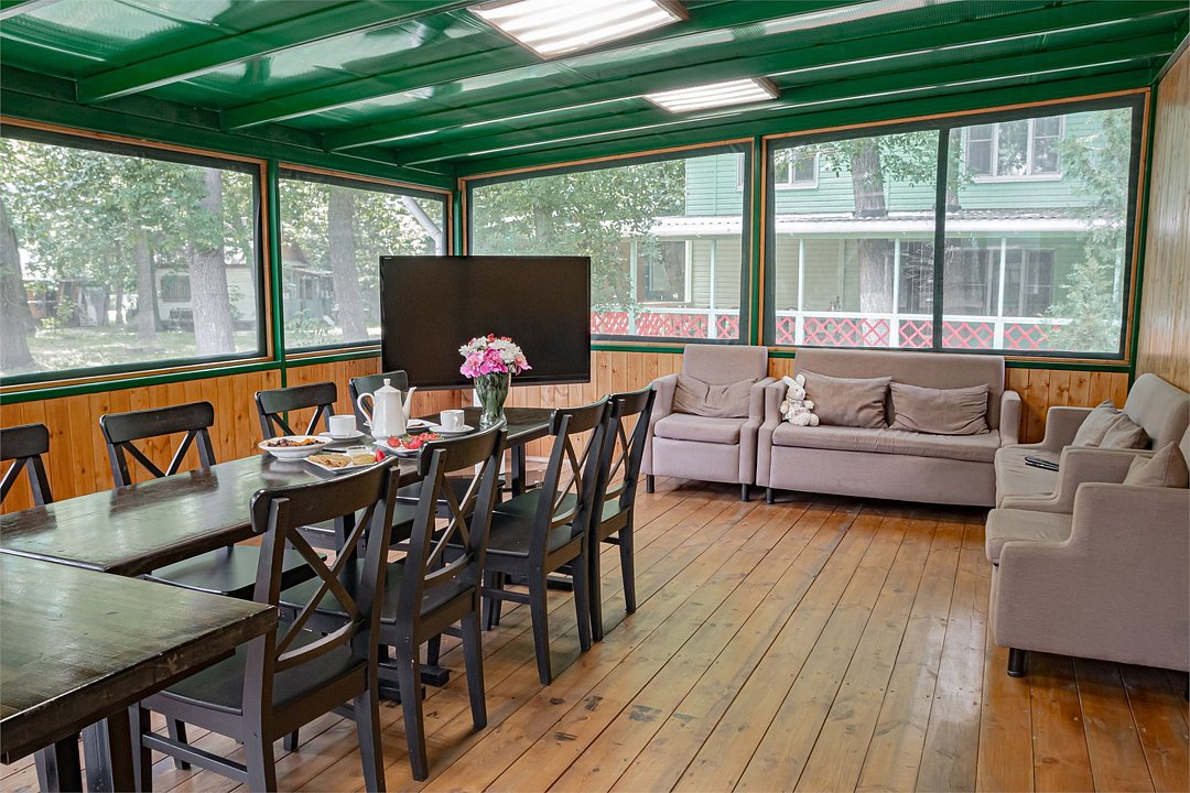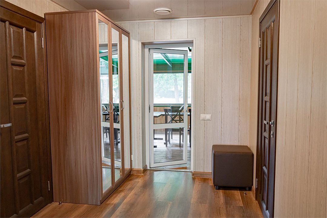 Каждая комната: 2 односпальных кровати, комод, тумбочки. Площадь комнат: 9-12 кв. м. Два санузла на 4 комнаты. Гардеробная. Открытая веранда.