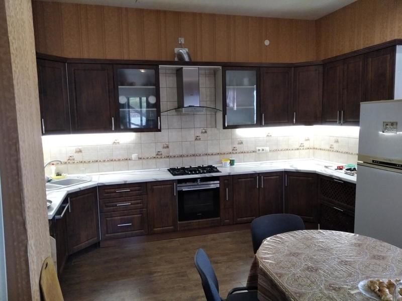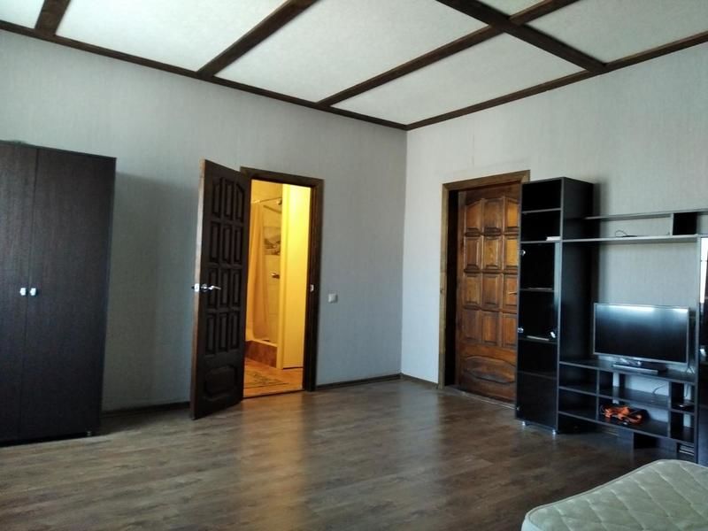 - на 1-м этаже: один номер, большая гостиная, кухня (вытяжка, п/моечная машина, духовой шкаф, варочная поверхность, посуда, м/волновая печь, 2 холодильника, кондиционер), подсобные помещения (лари для рыбы, стиральная машина, гладильная доска и пр.), общий санузел.