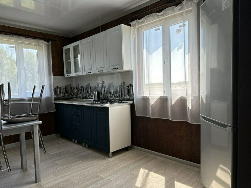 Две спальни по две кровати, в холле совмещенном с кухней находится диван, который может послужить пятым спальным местом