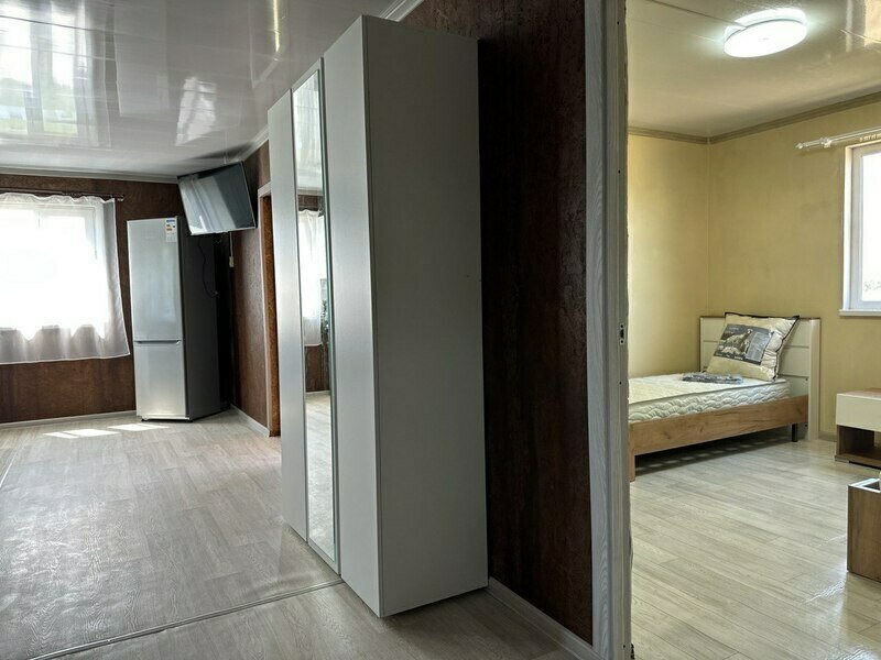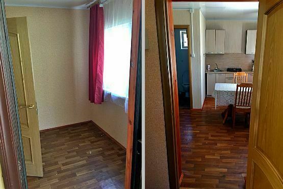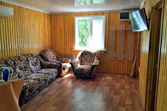 Коттедж рассчитан для проживания двух или трех человек на основных местах (+ одно доп. место - раскладная кровать). Включает в себя: одну спальню, кухню, санузел и беседку. В спальне вы найдете две просторные 1.5 спальные кровати, диван-книжку, прикроватные тумбочки, комод, вешалки, мебельный сейф, сплит-систему, телевизор, спутниковый ресивер. В кухне – кухонный гарнитур, мягкий уголок, с табуретками, обеденный стол, двухкамерный холодильник, газовая плита, чайник, набор посуды, кухонное полотенце, средства для мытья. В санузле - горячую и холодную воду, душевую кабину, раковину с зеркалом, полотенца для рук, туалетную бумагу, жидкое мыло и освежитель воздуха. В беседке есть стол со скамейкой, проведен свет для приятного вечернего отдыха. спальне вы найдете две просторные 1.5 спальные кровати, диван-книжку, прикроватные тумбочки, комод, вешалки, мебельный сейф, сплит-систему, телевизор, спутниковый ресивер. В кухне – кухонный гарнитур, мягкий уголок, с табуретками, обеденный стол, двухкамерный холодильник, газовая плита, чайник, набор посуды, кухонное полотенце, средства для мытья. В санузле - горячую и холодную воду, душевую кабину, раковину с зеркалом, полотенца для рук, туалетную бумагу, жидкое мыло и освежитель воздуха. В беседке есть стол со скамейкой, проведен свет для приятного вечернего отдыха.