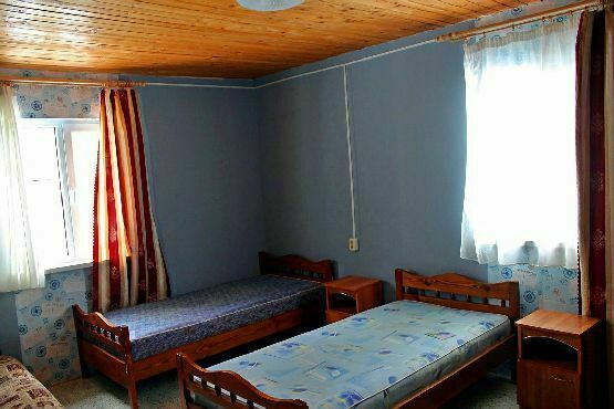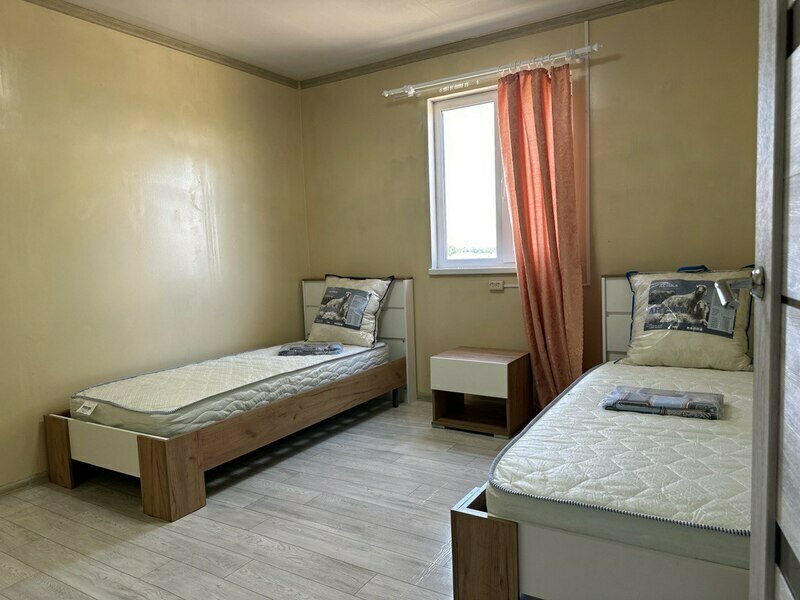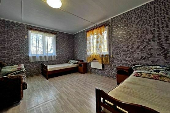 Большой дом, состоящий из 4-х блоков с отдельными входами, хорошо выполненными звукоизоляционными перегородками. Каждый дом рассчитан на проживание двух человек. Возможно подселение третьего без доплаты. В каждом блоке спальня с двумя 1,5 сп. кроватями, кухня, санузел с душем, умывальником и туалетом. Коттедж расположен на "дальней территории"