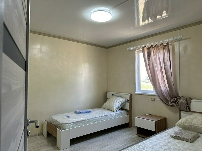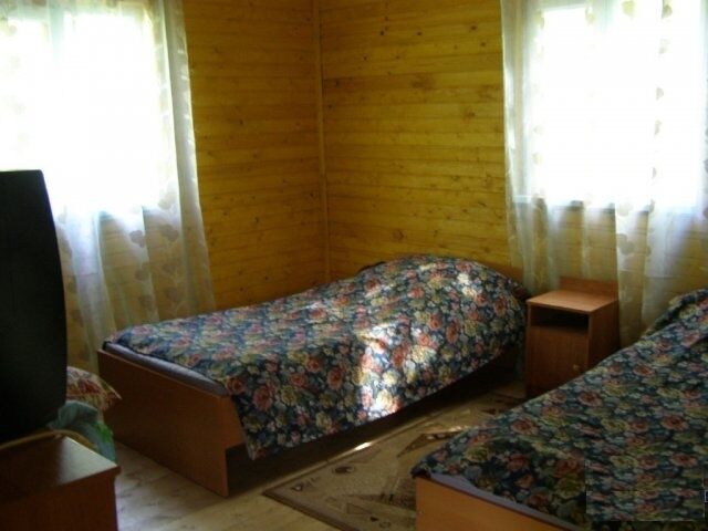 Коттедж рассчитан для проживания пяти человек на основных местах (+ одно доп. место - раскладная кровать). Включает в себя: две спальни, кухню, санузел и беседку. В каждой спальне вы найдете две просторные 1.5 спальные кровати, в одной из спален раскладной диван-книжка, прикроватные тумбочки, шкаф для одежды, мебельный сейф, вешалки, сплит-систему, телевизор со спутниковым ТВ. В кухне – кухонный гарнитур, обеденный стол со стульями, раковина, холодильник двухкамерный, газовая плита, чайник, набор посуды, полотенце, средства для мытья. В санузле - горячую и холодную воду, душевую кабину, раковину с зеркалом, полотенца для рук, туалетную бумагу, жидкое мыло и освежитель воздуха. В беседке есть стол со скамейкой, проведен свет для приятного вечернего отдыха.