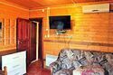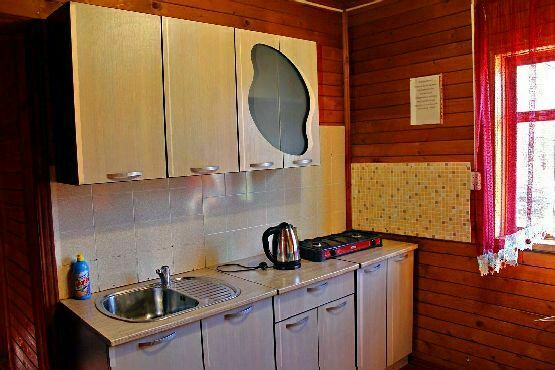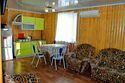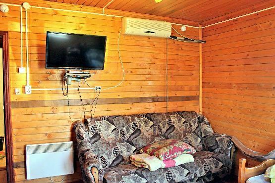 Коттедж рассчитан для проживания двух или трех человек на основных местах. Включает в себя: одну спальню, кухню, санузел и беседку. В спальне стоят две просторные 1.5 спальные кровати, диван-книжка, прикроватные тумбочки, комод, вешалки, сплит-систему, телевизор, спутниковый ресивер. В кухне – кухонный гарнитур, мягкий уголок, с табуретками, обеденный стол, раковину, холодильник, газовую плиту, чайник, набор посуды, полотенце, средства для мытья. В санузле - горячая и холодная вода, душевая кабина, полотенца для рук, туалетная бумага, жидкое мыло и освежитель воздуха. В беседке есть стол со скамейкой, проведен свет для приятного вечернего отдыха.