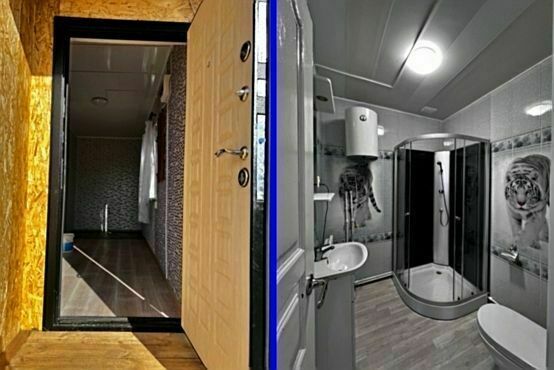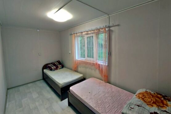 Большой дом, состоящий из 4-х домов с отдельными входами, хорошо выполненными звукоизоляционными перегородками. Каждый дом рассчитан на проживание двух человек. Возможно подселение третьего без доплаты. В каждом блоке спальня с двумя 1,5 сп. кроватями, кухня, санузел с душем, умывальником и туалетом. Коттедж расположен на "дальней территории"