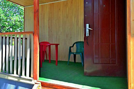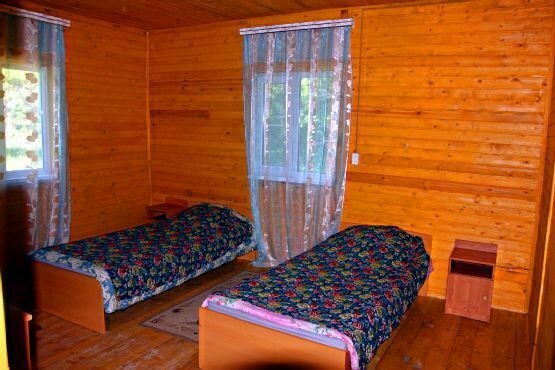 Двухкомнатный коттедж, рассчитан для проживания четырех человек на основных местах. Две спальни, каждой спальне по две кровати. Обустроен небольшой открытой верандой. Коттедж расположен на "дальней территории"