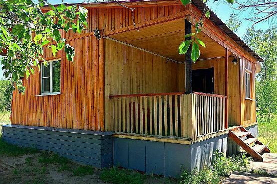 Обустроен небольшой открытой верандой. Коттедж расположен на "дальней территории" в 10 м от воды.