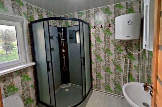 Коттедж включает в себя: одну спальню, кухню, санузел и беседку. В спальне три просторные 1.5 спальные кровати, прикроватные тумбочки, вешалки, сплит-систему, телевизор, спутниковый ресивер. В кухне – кухонный гарнитур, обеденный стол со стульями, двухкамерный холодильник, газовая плита, чайник, набор посуды, полотенце, средства для мытья. В санузле - горячую и холодную воду, душевую кабину, раковину с зеркалом, полотенца для рук, туалетную бумагу, жидкое мыло и освежитель воздуха. В беседке есть стол со скамейкой, проведен свет.