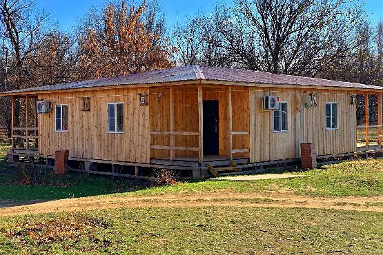 Двухкомнатный коттедж, рассчитан для проживания четырех человек на основных местах. Две спальни, каждой спальне по две кровати. Обустроен небольшой открытой верандой. Коттедж расположен на "дальней территории"