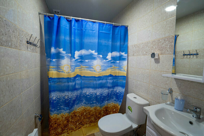 В санузле: душ, полотенца для рук, туалетная бумага, мыло, освежитель воздуха. В беседке с москитной сеткой: двухкамерный холодильник, стол, скамейка для приятного отдыха.