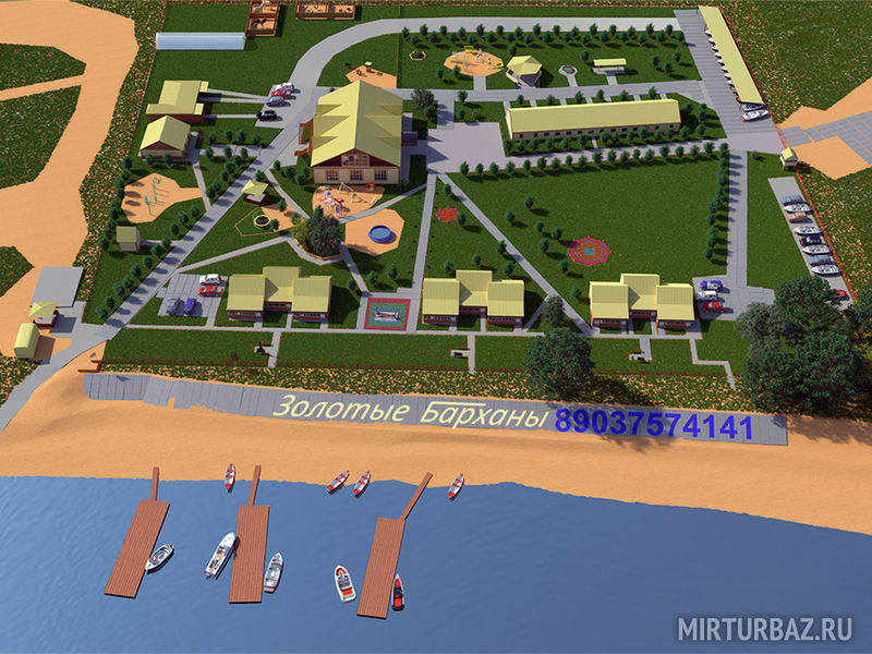 База «Золотые Барханы» расположена на правом берегу Волги в Енотаевском районе Астраханской области, близ села Замьяны. На 1319 км. федеральной трассы М-6.