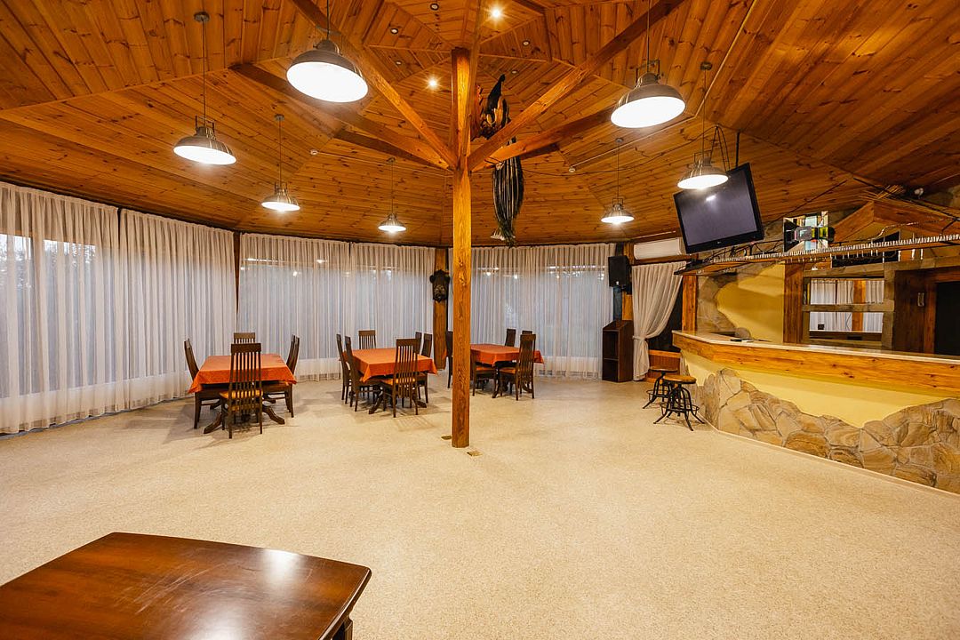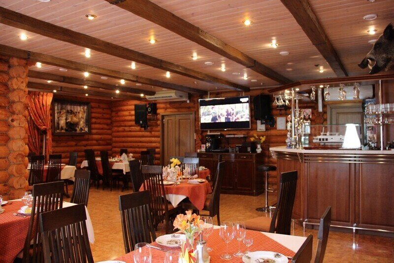 Зал ресторана отличается домашним уютом, а обед или ужин на открытой террасе ресторана позволит Вам, наслаждаясь с любовью приготовленными блюдами и напитками, созерцать водную гладь. Ресторан рассчитан на одновременный прием до 40 гостей и до 50 гостей в банкетном зале.