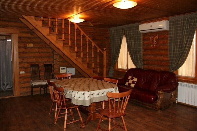 Дом - сруб - 2 этажа. Идеально подходит для компании из 3 человек. Дом состоит из двух номеров на 1 и 2 этаже с двумя отдельными входами. В каждом номере расположена ванная комната. Изысканный дом в охотничьем. В номерах: спутниковое телевидение, система кондиционирования, холодильник, сейф, wi-fi.