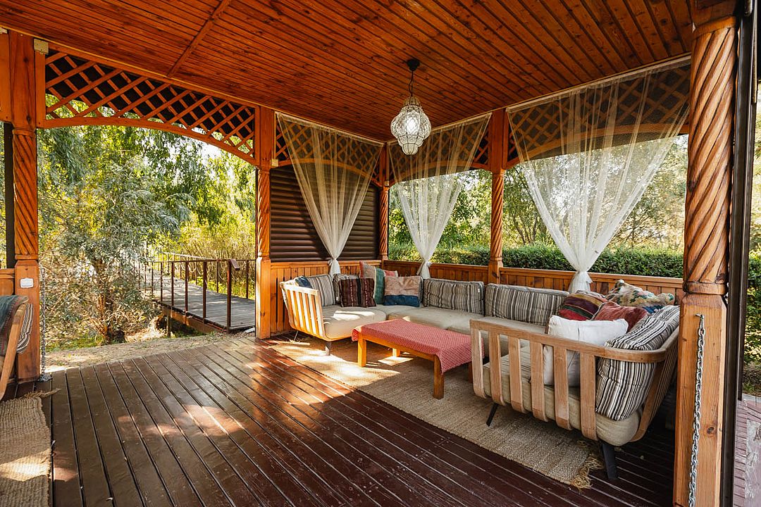 Аренда летней беседки на берегу реки до 12 человек (для дневного пребывания), в том числе для проживающих на базе гостей — 6500 ₽ / день (с обслуживанием официантом).