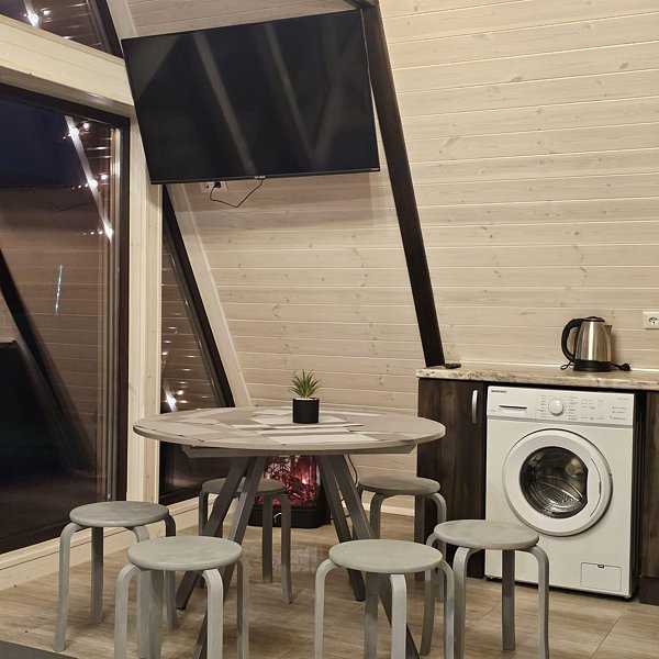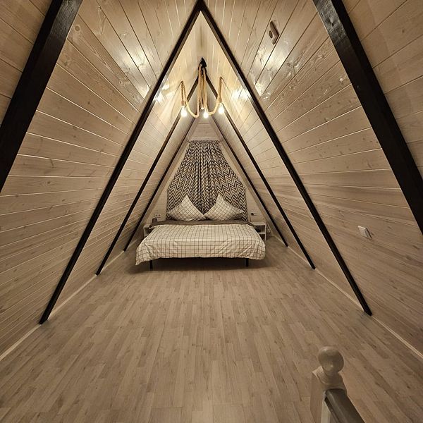 Здесь вы сможете отдохнуть в уютных A-Frame, рассчитанных на небольшую компанию. В каждом доме имеются уютные спальные места со свежим постельным бельем, ванная комната, полотенца и стиральная машина. Установлен кондиционер и имеется Wi-Fi.