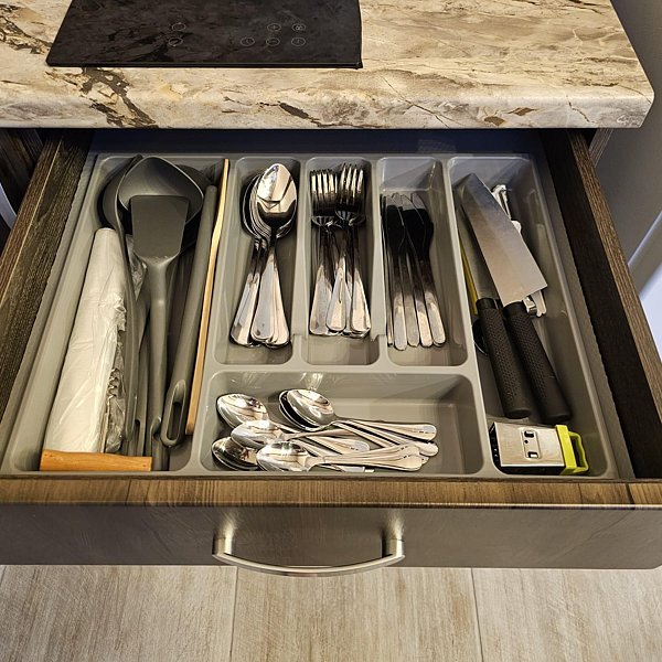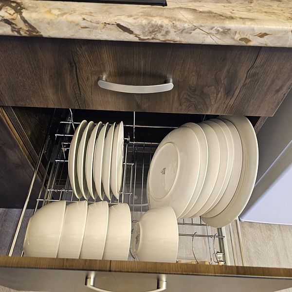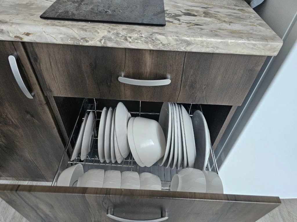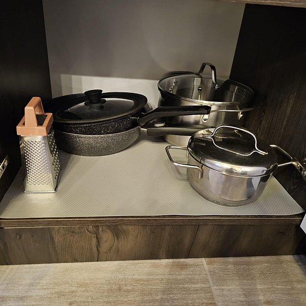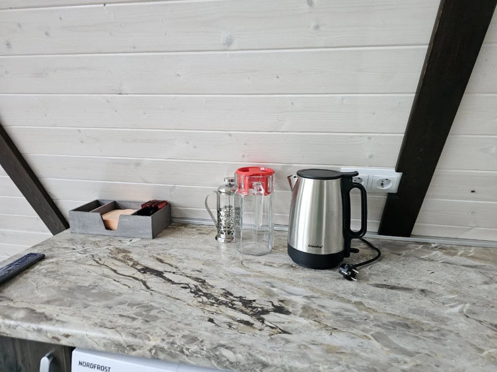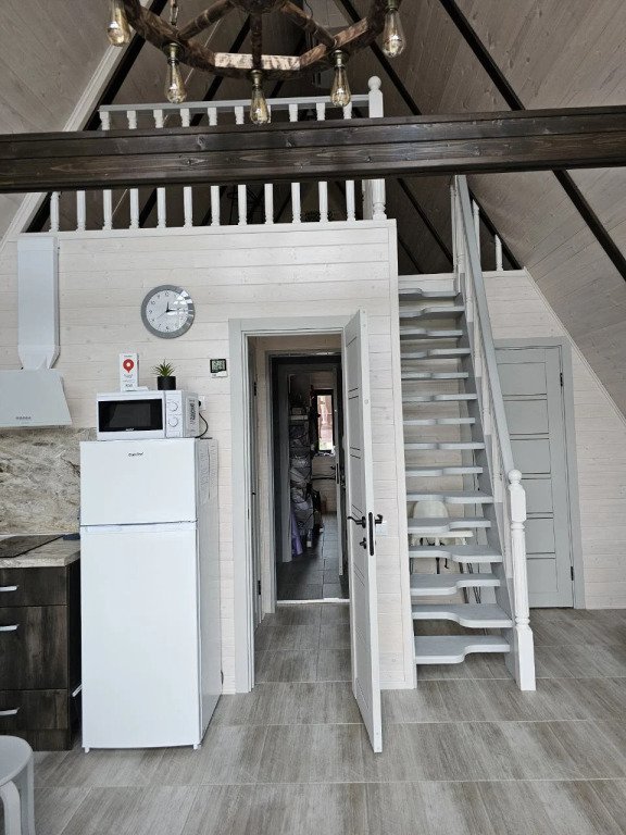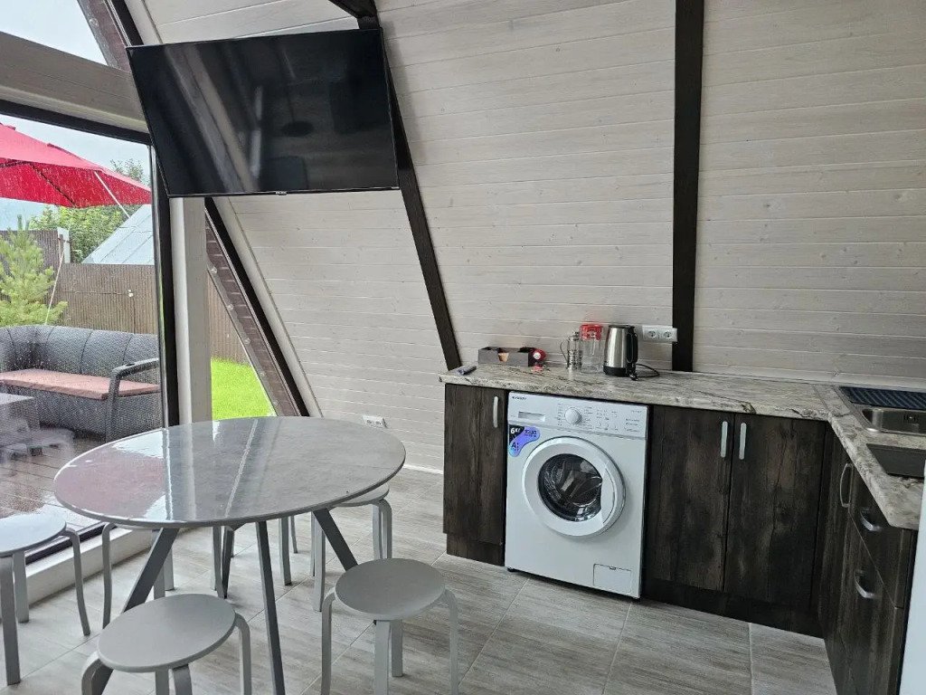 Кухня оснащена холодильником, микроволновой печью и электрической плитой. А на свежем воздухе оборудована мангальная зона.