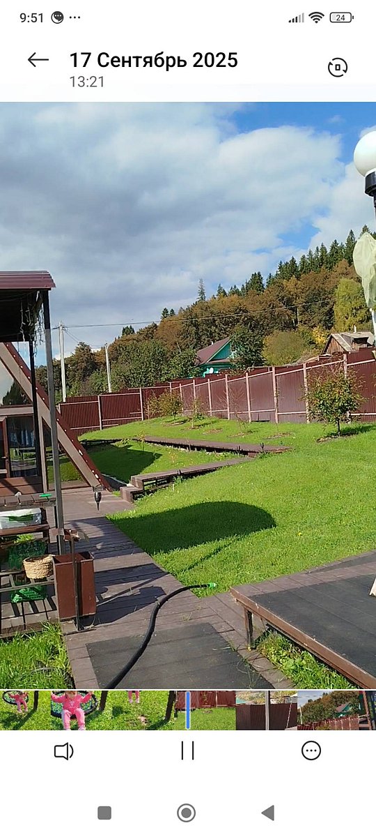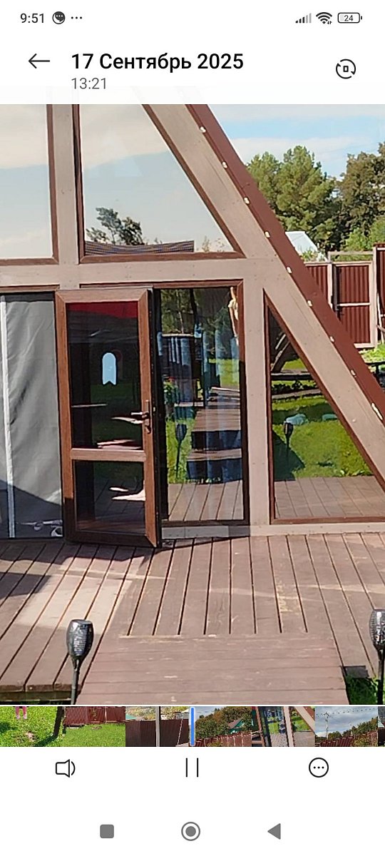 Семейный отдыхДостоинстваОчень красивая местность, чистый воздух, на территории есть детская площадка, качели, мягкий газон ,вечером подсветка просто красота, все чисто аккуратно, в домике уютно чисто, все необходимое есть, посуда,техника,пастель свежая ,все в восторге особенно дети,хозяева доброжелательные , приветливые, спасибо большое за приятный отдых!