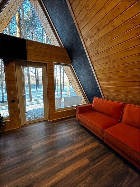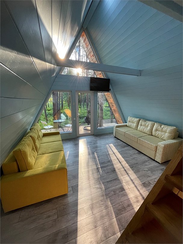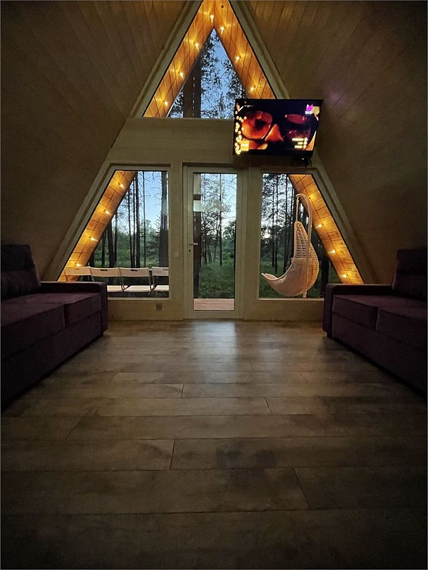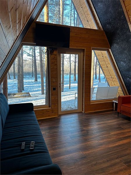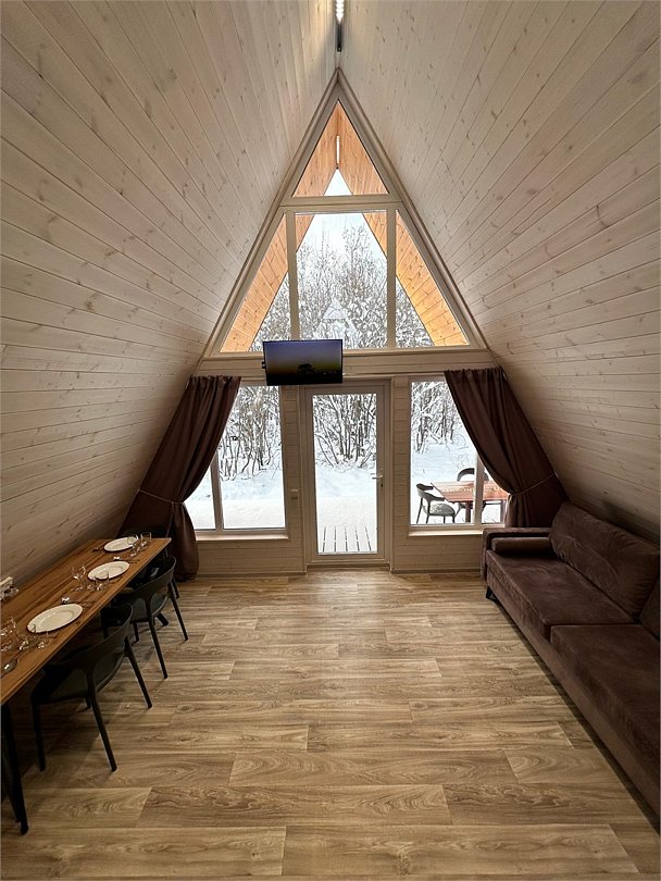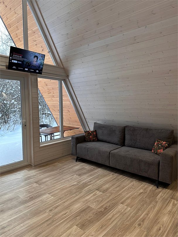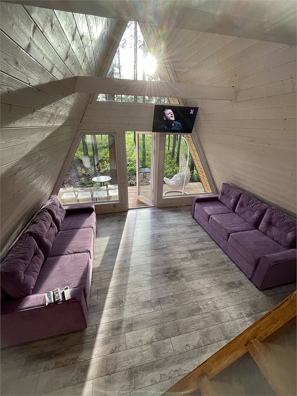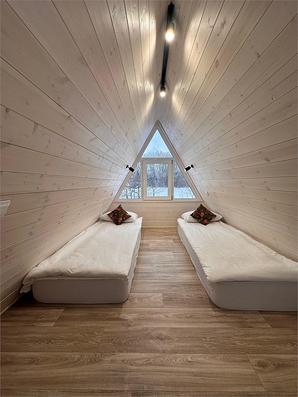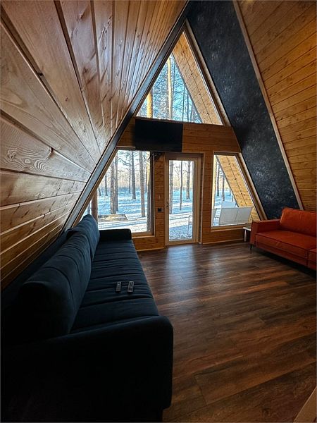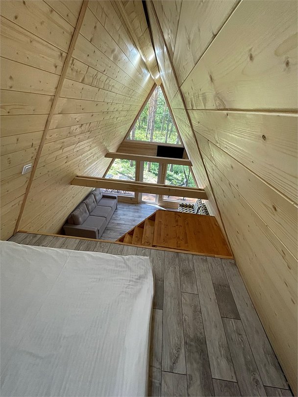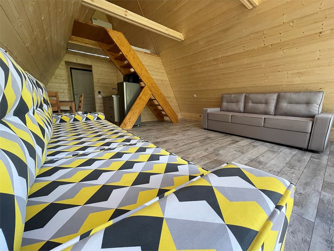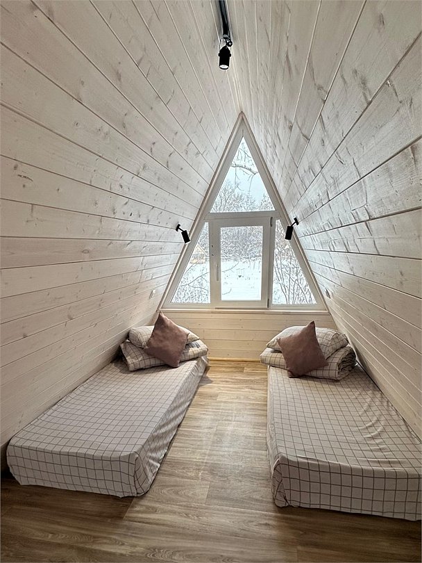 Четыре двуспальные кровати, три диван-кроватиВ а-фрейме