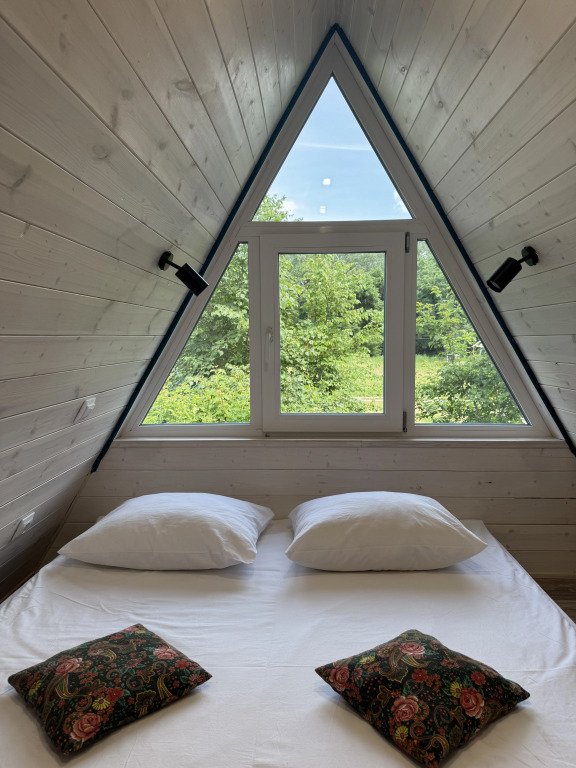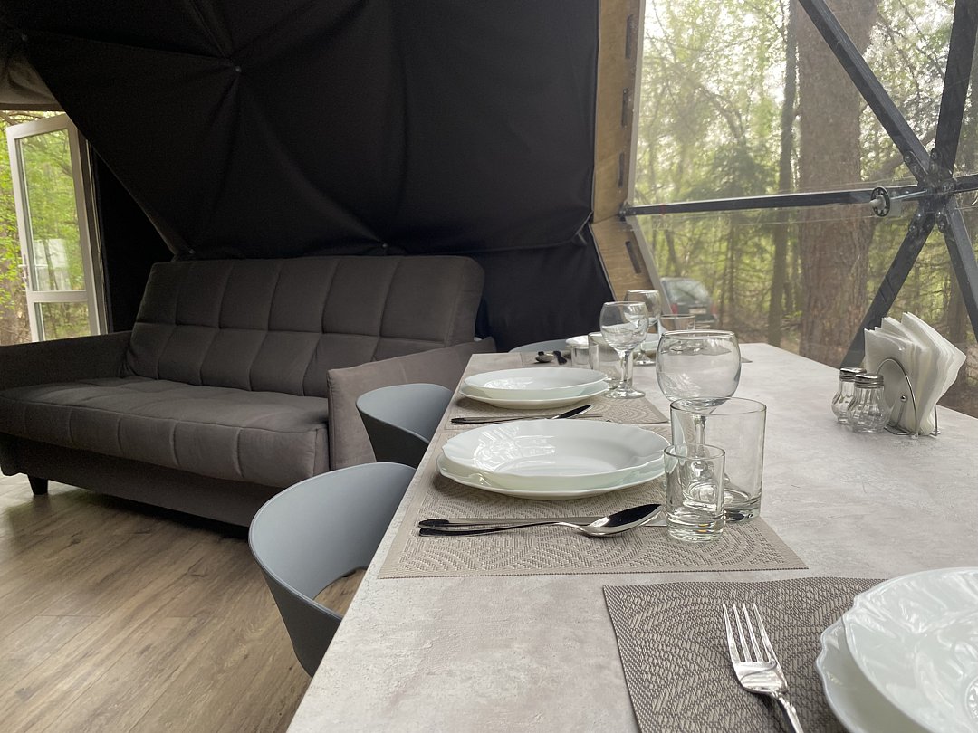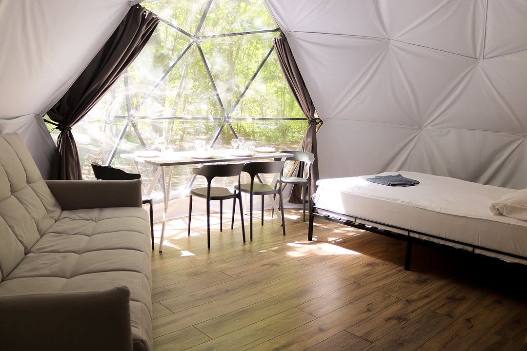 Одна двуспальная кровать, одна диван-кроватьГеокупол №4