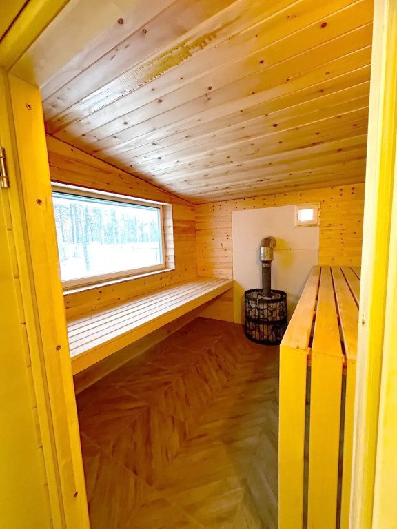 Двухэтажная баня построена с соблюдением вековых традиций. Дровяная печь и камни помогают получить идеальное количество горячего пара. Баня рассчитана для пребывания до 20 человек, и в нее входит: парилка с печью на дровах, душевая, просторная комната для отдыха с телевизором, кухня с микроволновкой, чайником и всей необходимой посудой.