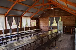 Читать полностьюБеседка рассчитана на одновременное пребывание до двадцати человек. Внутри есть стол, стулья, холодильник и кухонная зона с раковиной. В холодное время года помещение можно обогреть печкой, что создает комфортные условия.