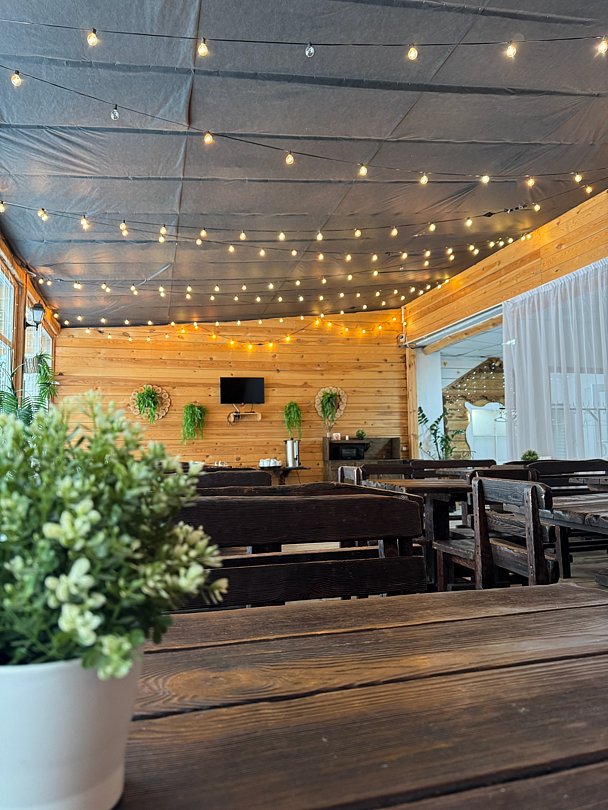 Терраса предназначена для размещения компании численностью до шестидесяти человек и представляет собой уютное и просторное пространство для проведения торжественных мероприятий и деловых встреч. Тщательно продуманная планировка и приятная атмосфера делают ее превосходным выбором для свадеб, дней рождения, корпоративных мероприятий и конференций.