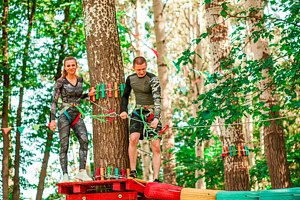 Читать полностьюВеревочный парк предлагает разнообразные маршруты для посетителей всех возрастов. Дети и те, кто не готов к серьезным испытаниям, могут выбрать легкий «Зеленый» маршрут, на высоте двух с половиной метров. Для любителей экстрима предназначена «Красная» трасса, которая потребует хорошей физической подготовки и смелости. Это захватывающее приключение для сильных и решительных людей.