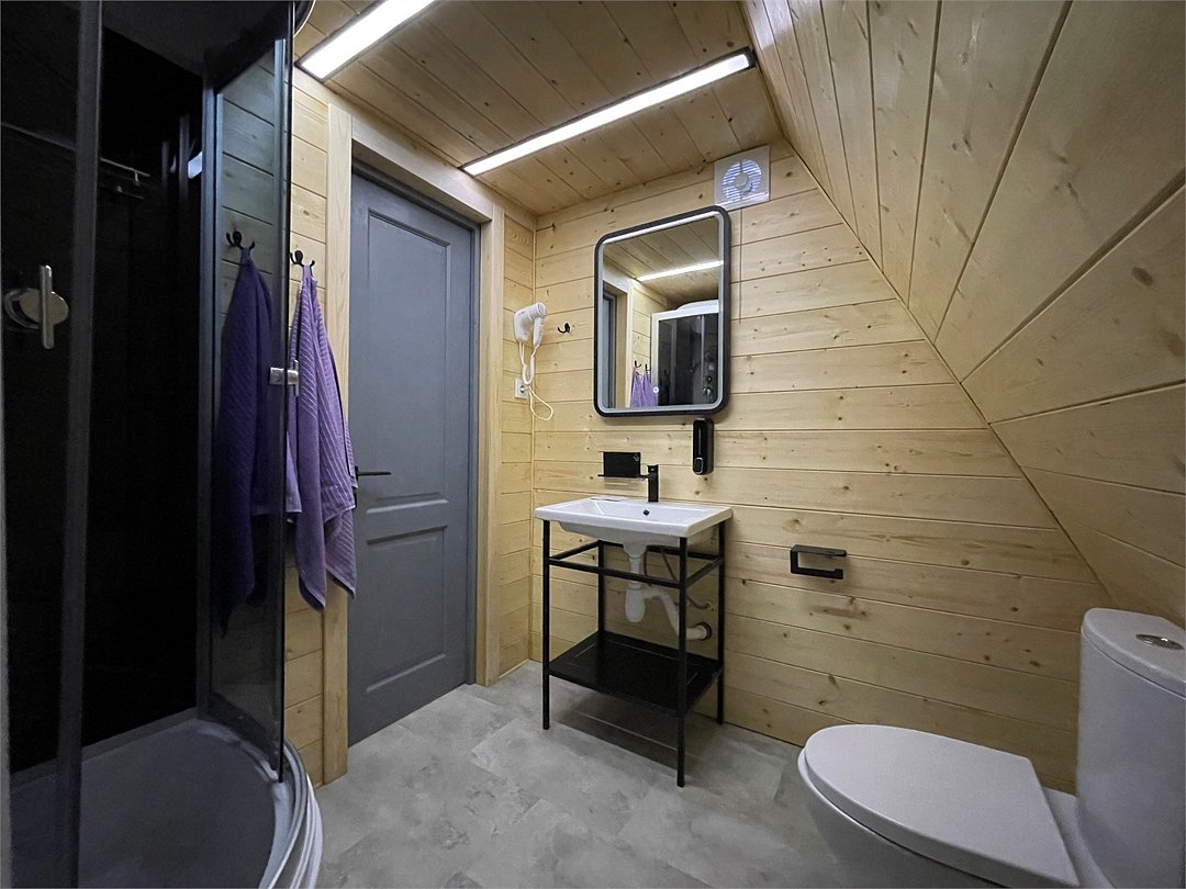 WС - один совмещенный санузел, душ, фен, набор косметических принадлежностей и тапочки.