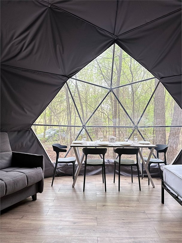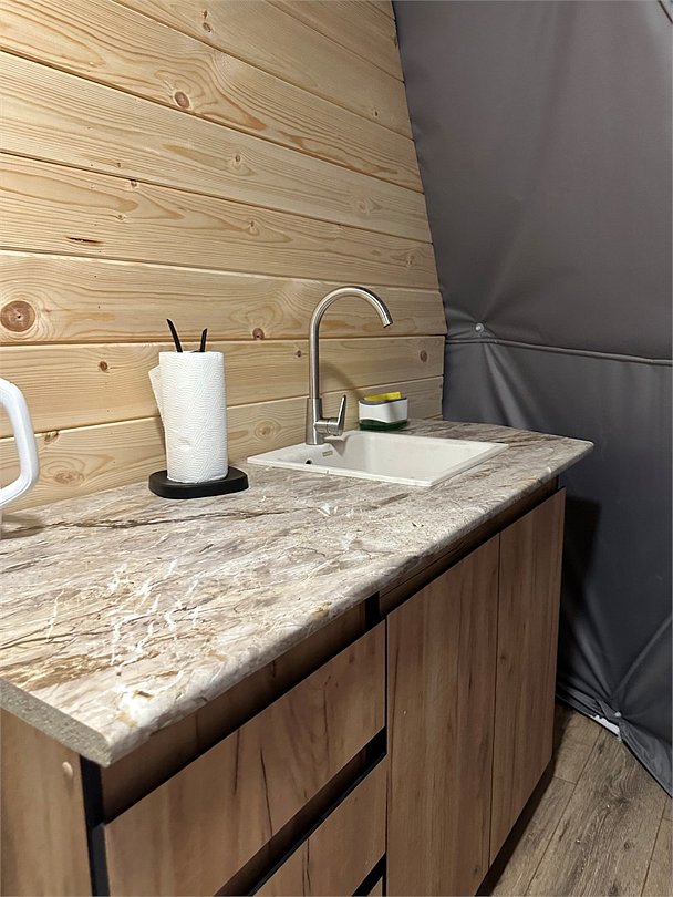 Павильон «Куштау» рассчитан на размещение до шестидесяти человек и полностью закрыт, что обеспечивает комфорт и возможность проведения мероприятий в любую погоду. В помещении есть холодильник и кухонная зона с раковиной, а под навесом недалеко от него оборудована мангальная зона.