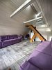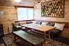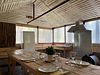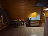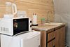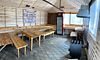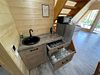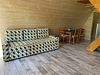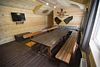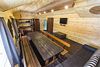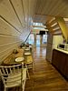 Второй этаж оборудован просторной гостиной с уютной зоной для трапез, удобными столами и скамейками. Здесь также имеется кухонная зона с микроволновой печью, холодильником и кухонными принадлежностями, а для развлечений предусмотрен телевизор.